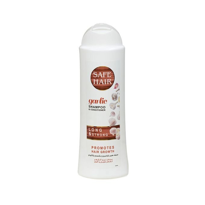 شامبو Safe Hair بالثوم، وهو مصمم لتقوية الشعر من الجذور وتعزيز نموه.